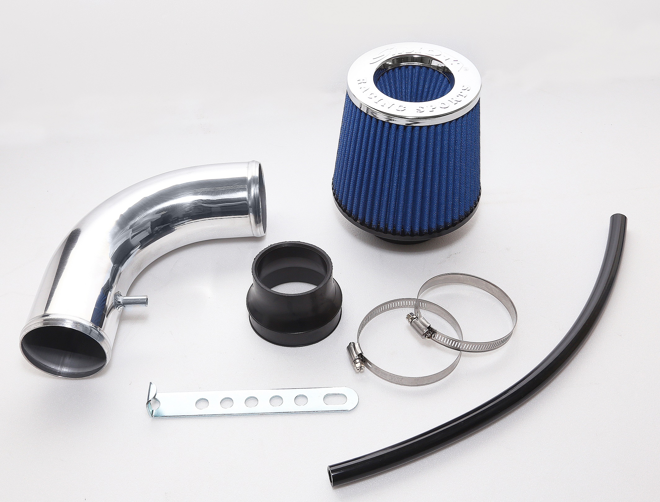 3. Components: SIMOTA urethane air filter (cleanable), filter clamp, high quality polished aluminum pipe, bracket and coupler.